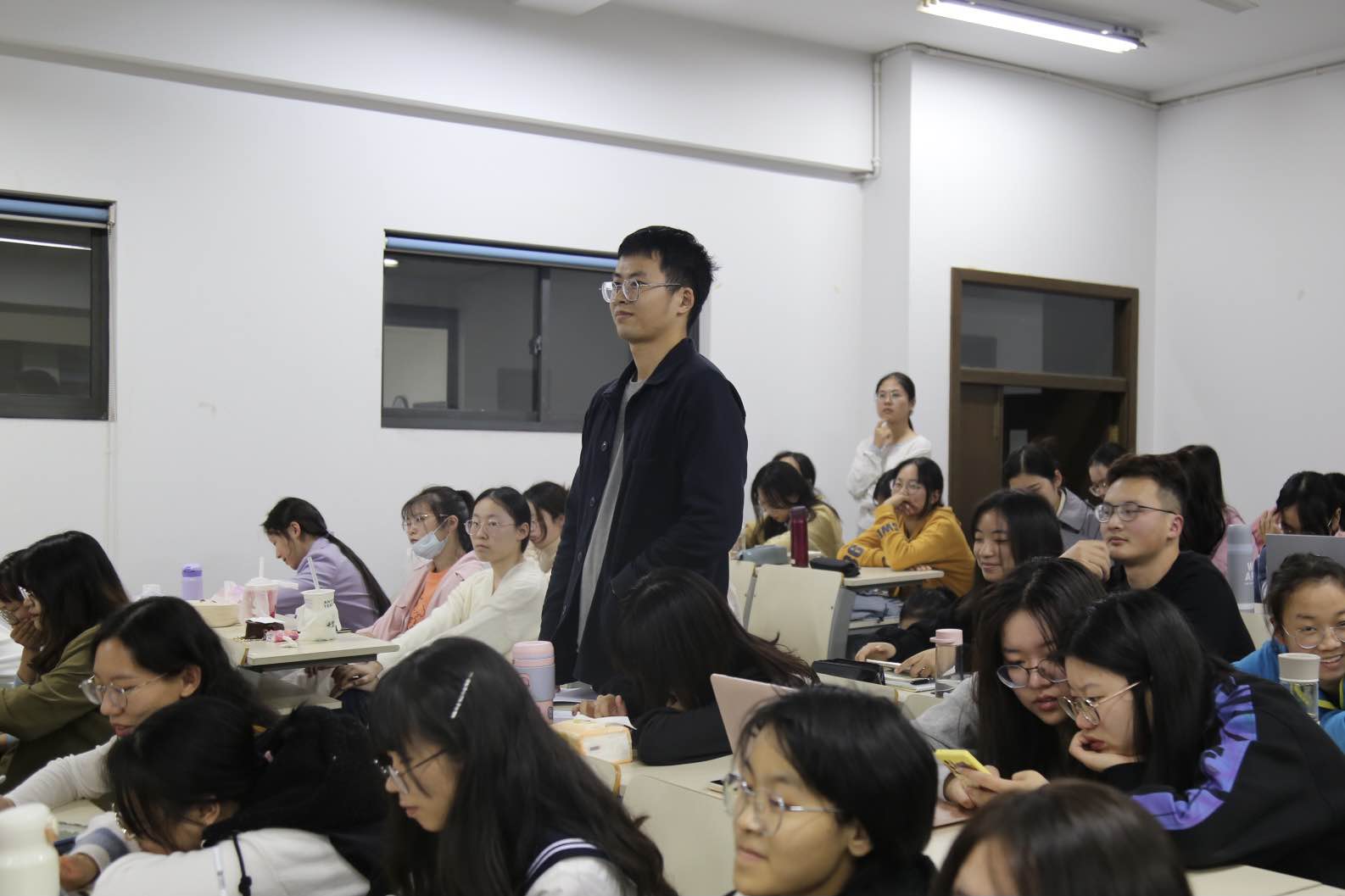 在互动答疑环节,同学们就“小学教师的成就感从何而言”“如何对待爱回答问题又总跑题的学生”“如何很快赢得学生的敬重”“如何恰当处理与学生的距离”等问题,向张校长请教。张校长强调,小学老师要有耐心,在充分了解每一位学生、尊重学生个性的前提下,帮助学生成长,同时也收获个人自身的成长,这是最大的价值。