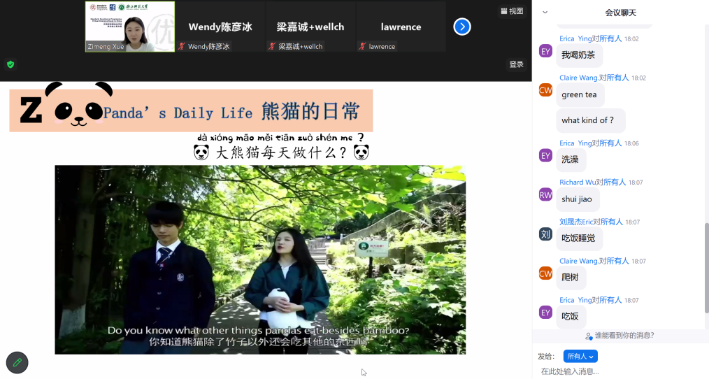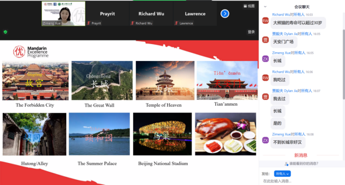 “历史文化遗产”课程中,老师们通过视频,帮助学生们一步步探索发现特色北京,寓教于乐,趣味横生。同学们在了解北京特色的同时也学习了如何用汉语介绍一座城市。授课过程中,老师们耐心讲解,营员们在评论区热情互动。在随后的语伴活动中,英国同学也分享了自己的感受。